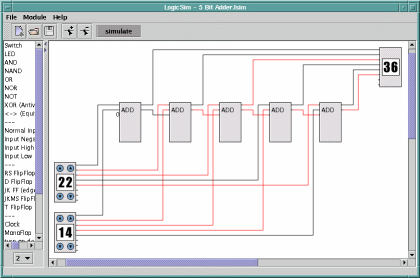 För enkla grindar (AND, OR, XOR, osv) kan man välja antalet ingångar i boxen under komponentlistan. Detta görs innan man väljer grinden från komponentlistan, dvs det går inte att i efterhand byta antalet ingångar. Grindar med fler än två ingångar beter sig i simuleringen som flera kaskadkopplade grindar: